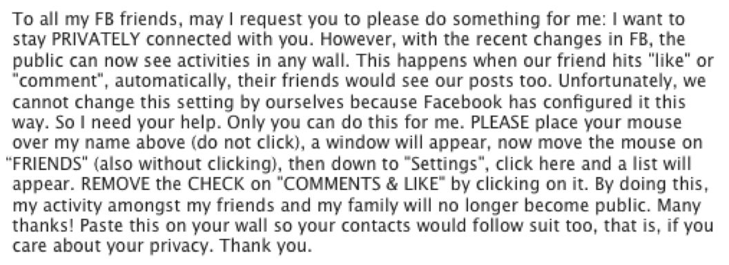 Recently started getting this request from friends on Facebook to make comments private.