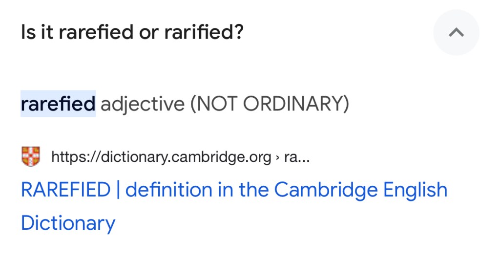 So it was a bit surprising that a full-page, back cover color ad in today’s WSJ ($300k+) has a prominent misspelling on probably the focal word in the message – ‘rarified’.  We may give the agency a pass, but a clear fail on the client’s word police, and also potentially the paper (after all, the correct spelling – ‘rarefied’ – is used in an editorial piece just a few pages away.)  Is no one in the ad department checking the copy?